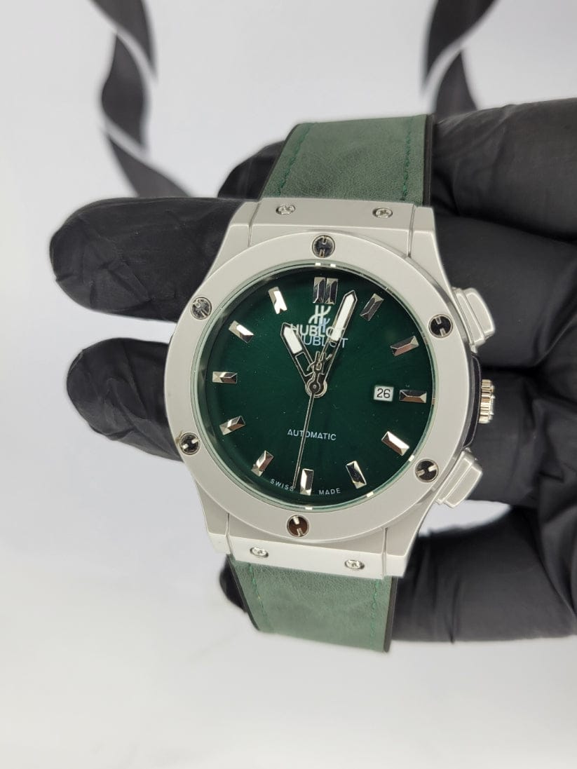 Be the first to review “Hublet Green Aura Watch with Leather Strap” Cancel reply
