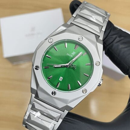 Hublet Premium Watch – Luxury Diamond Cut Chain – Green Dial