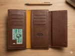 A premium travel wallet crafted from high-quality vintage grain leather, featuring a rich tan finish that develops a unique patina over time for a timeless look. Perfect for keeping your essentials organized in style.