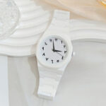 This elegant white wristwatch blends modern minimalism with artistic dial design. The premium white strap gives a clean, stylish look, while the unique black-and-gold abstract dial adds a luxurious touch. Perfect for daily wear and special occasions.